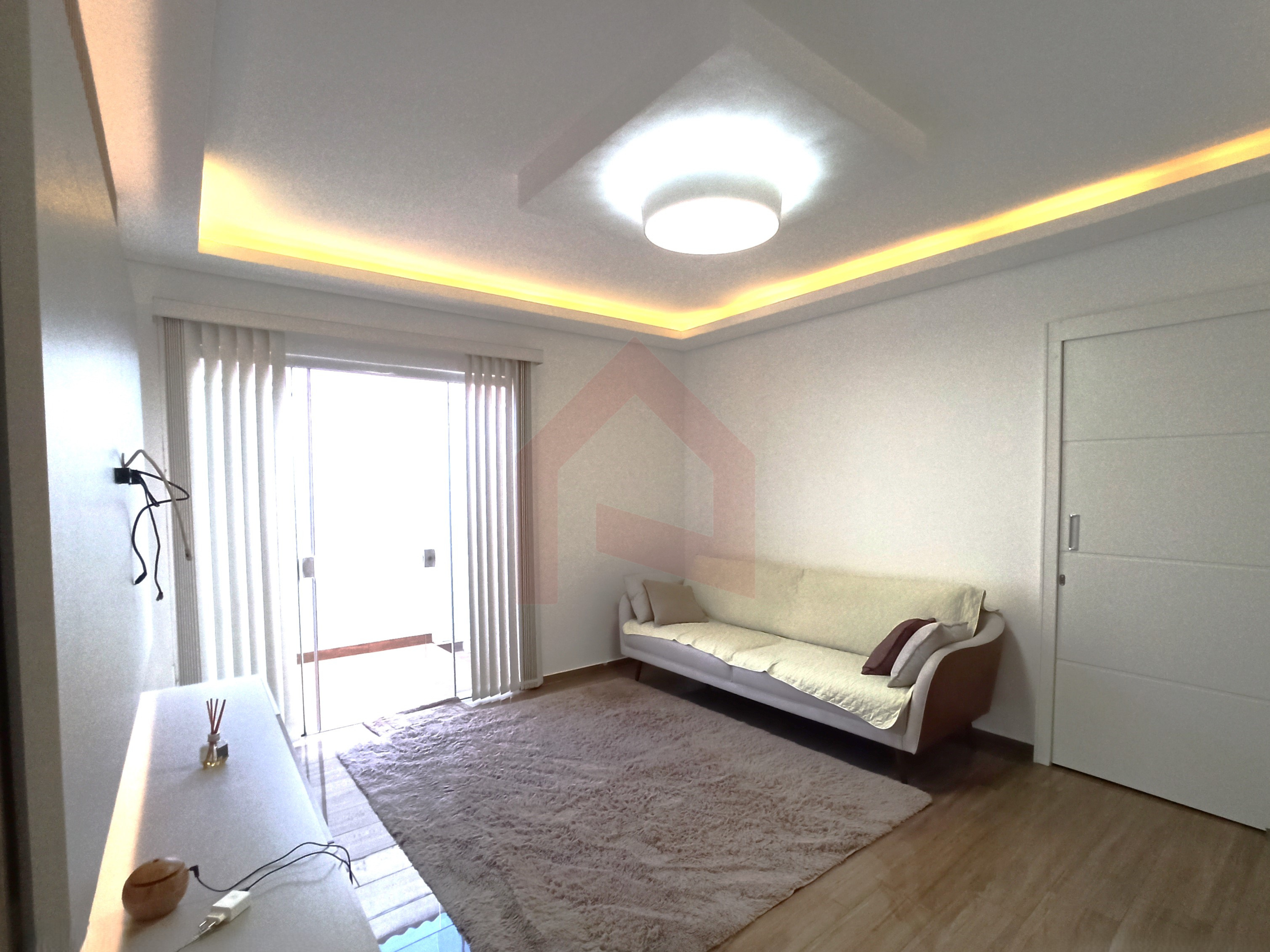 - Sala com sanca de gesso e iluminação em LED